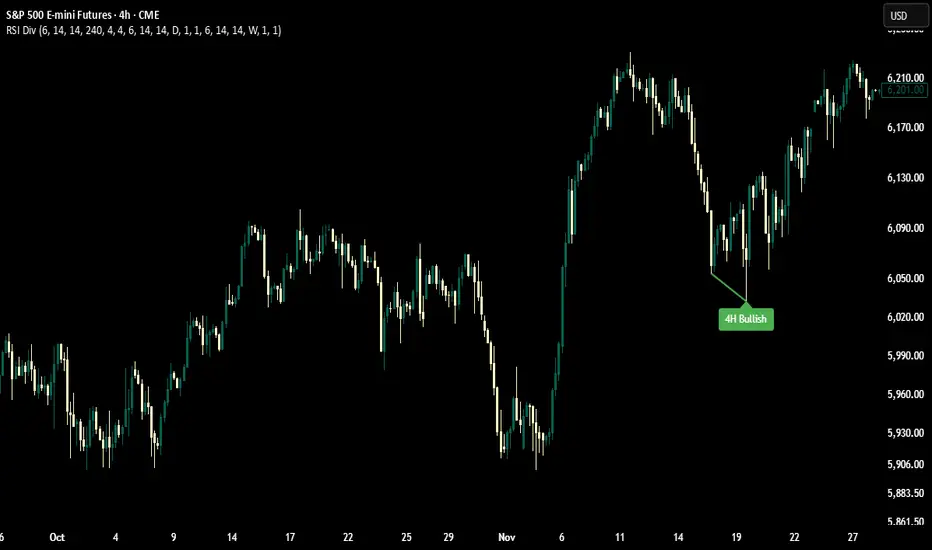 This script is a powerful and highly customizable tool designed to automatically detect and display RSI divergences from up to three independent, user-defined timeframes directly on your chart. It eliminates the need to manually switch between timeframes to find these critical trading signals, allowing you to see long-term and short-term divergences all in one place.