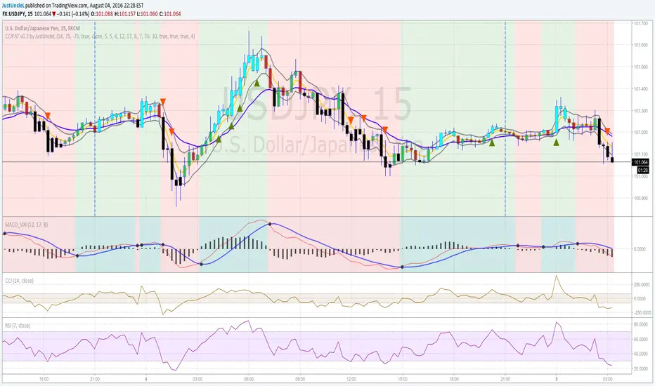 This is an updated and improved version of my "Price Action Trading strategy". I have added two extra optional filters, one is a trend direction filter based on the MACD slow EMA(17), blue line, and the other is a RSI(7) filter which works similarly to CCI(14) but slightly different dynamics (thank you to gianfranco60 for the suggestion). Also made a couple of corrections:
