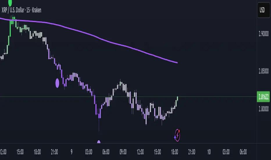 This is a beta version that tries to catch extremes in the marker. It uses RSI extremes aligned with distance from 55EMA (reversion to mean).