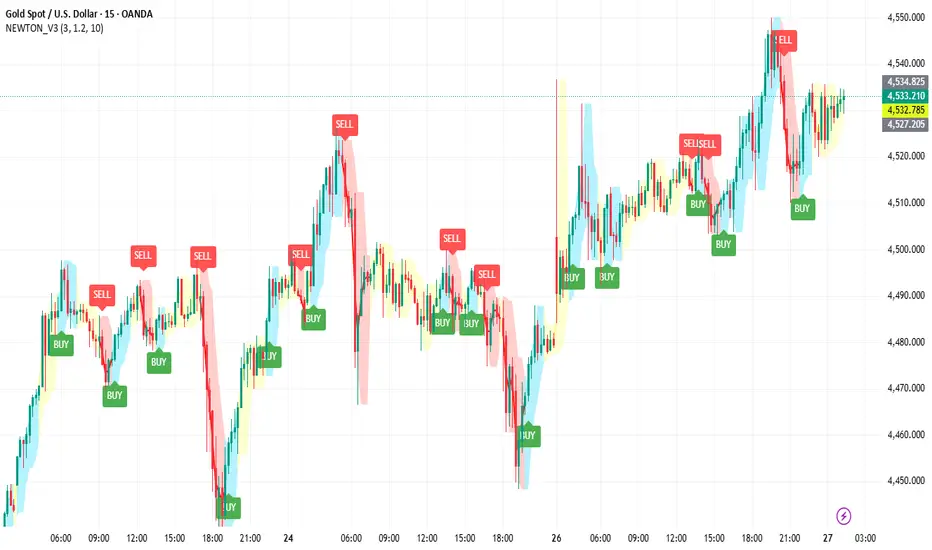 Introduction Newton is the newest powerhouse in the AI Exclusive series, specifically engineered to master trend dynamics. While most indicators fail during choppy, sideways markets, Newton uses advanced AI logic to distinguish between a true trending move and a high-risk range. It is designed for traders who value quality over quantity, providing signals only when the market has clear momentum.