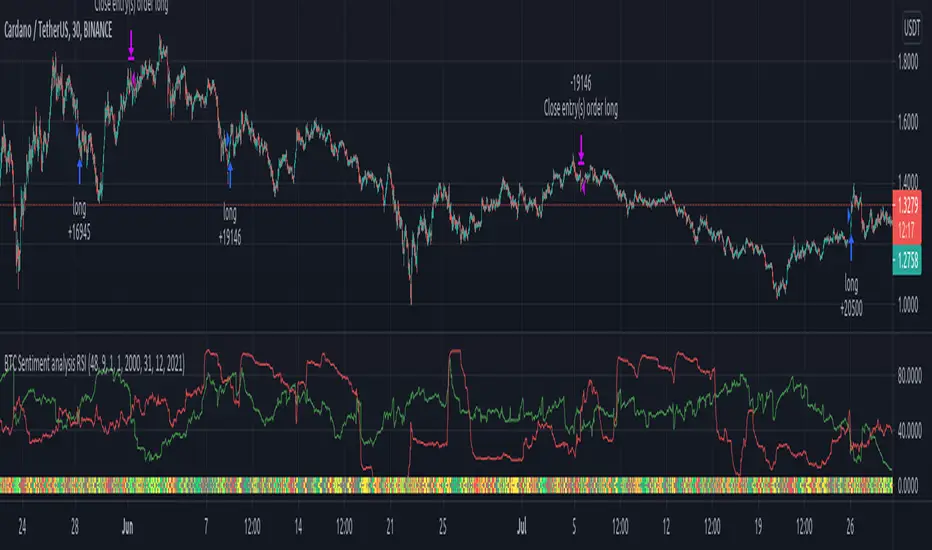 We exit when we get the opposite condition, in this case we have a crossunder of the rsi long ratio with rsi short ratio and long ratio from BITFINEX is below the long EMA and short ratio from BITFINEX is above short EMA.