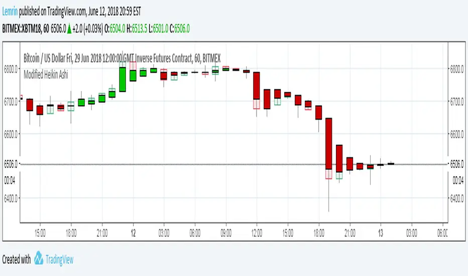 - HA open is traditionally equal to the mean of the previous HA candle's open and close values, but this modification shifts the HA open in the direction of a trend (more precisely, in the direction of and proportional to the 1-bar change in HA close).