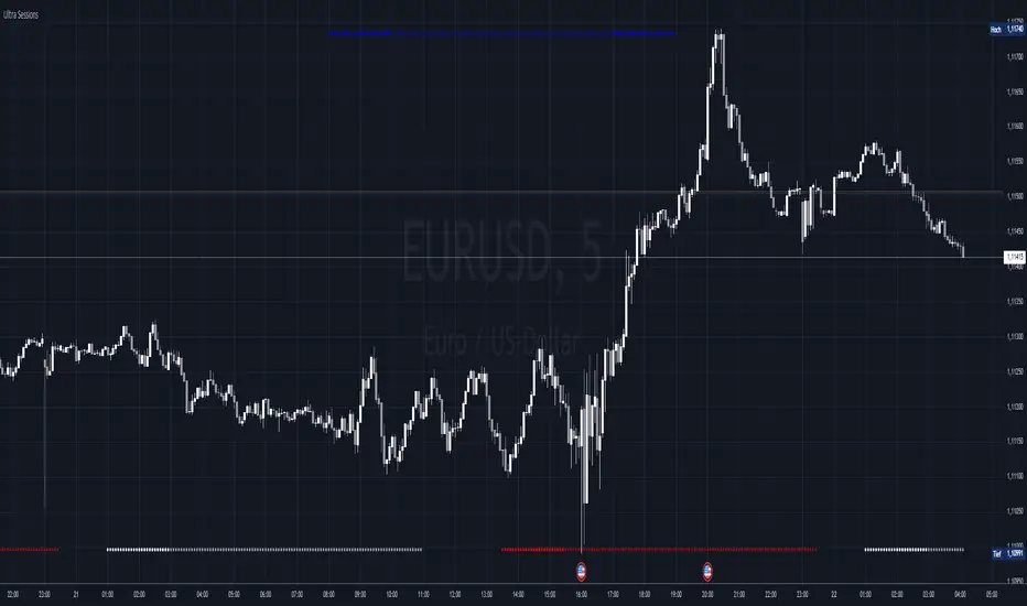 The "Ultra Sessions" indicator is designed to enhance your trading strategy by clearly marking key market sessions and their associated "kill zones" directly on your chart. This powerful tool supports multiple time zones and provides customizable alerts for session opens, closes, and critical kill zones, ensuring you never miss important market movements.