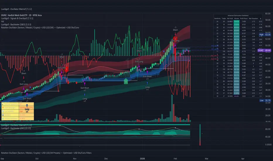 This indicator builds a rotation/relative-strength oscillator for Sectors, Metals, or Crypto using a fixed analysis timeframe (Daily/Weekly) regardless of your chart.