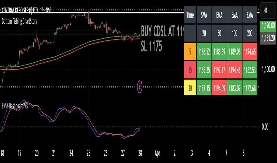 EMA Dashboard indicator is used for finding corrective during real time as well as where is taking support. It shows multiple timeframe along with multiple ema. From 5 mints charts to monthly chart and from 20 sma to 200 ema . So one can easily capture the price on different timeframe at single dashboard.
