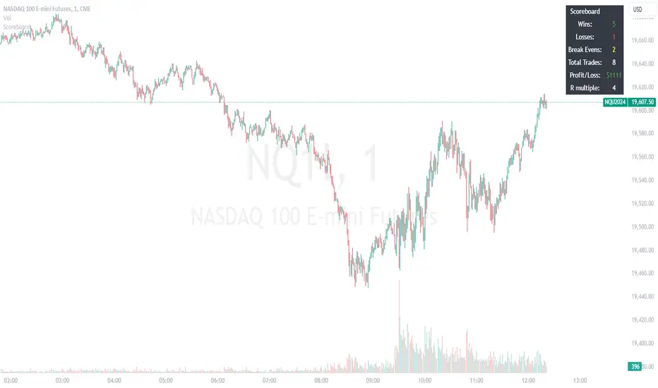 Manually track your trade record and display your results in a handy table. Good for backtesting and for making a manual ritual out of tracking your trades. This way you are less likely to overtrade during your session. This can also nice as an addendum to your charts, to show off your results and record them for later review.