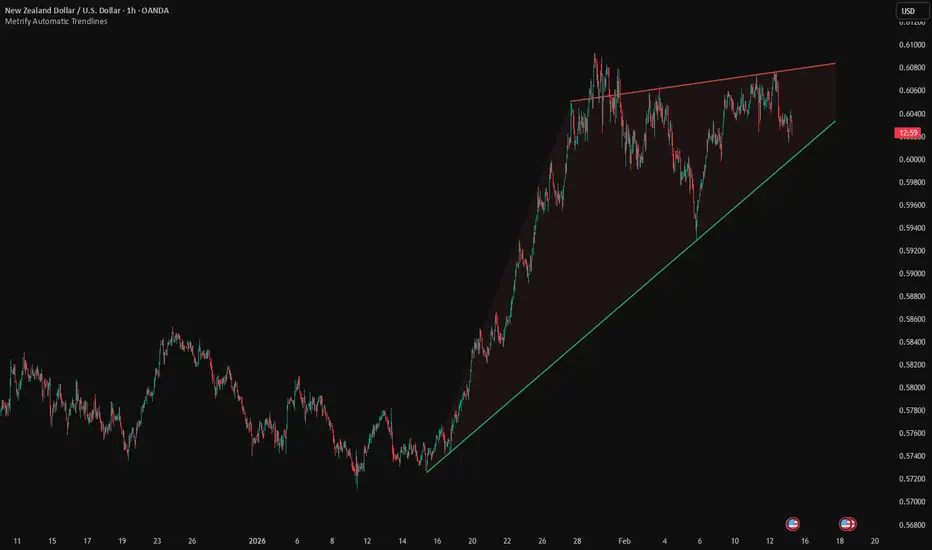 Metrify Automatic Trendlines is an auto-drawing support/resistance channel built around pivot clustering + scoring, not “connect two perfect points”. The script continuously collects swing pivots (high/low) over a configurable lookback window, then searches for the best single support line and the best single resistance line that behave like a human-drawn trendline: multiple interactions, controlled slope, limited break-throughs, and (most importantly) still relevant to the current price. (configurable in "Max Relevance Distance" input)