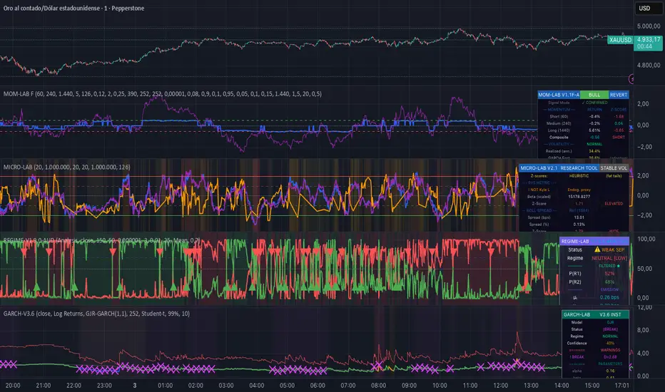 Institutional-grade diagnostics: GARCH, HMM Regimes, Cointegration, Microstructure, Fractal Analysis | Research only