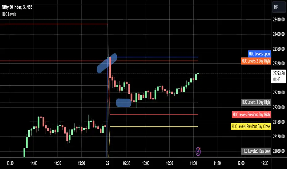 For example if 2 day's ago High price is breached by 1 day's ago High, then the 2 Day's ago High level color will greyed out in current day chart. Thus giving you a confirmation whether it's a fresh or already tested levels.