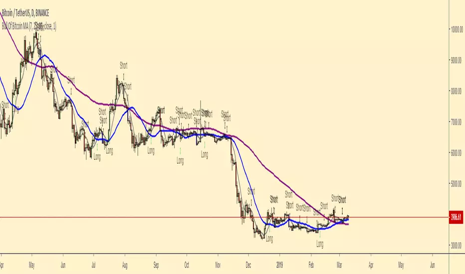 - Signals a possible Short Sell when the second candle that closes under the 7MA
