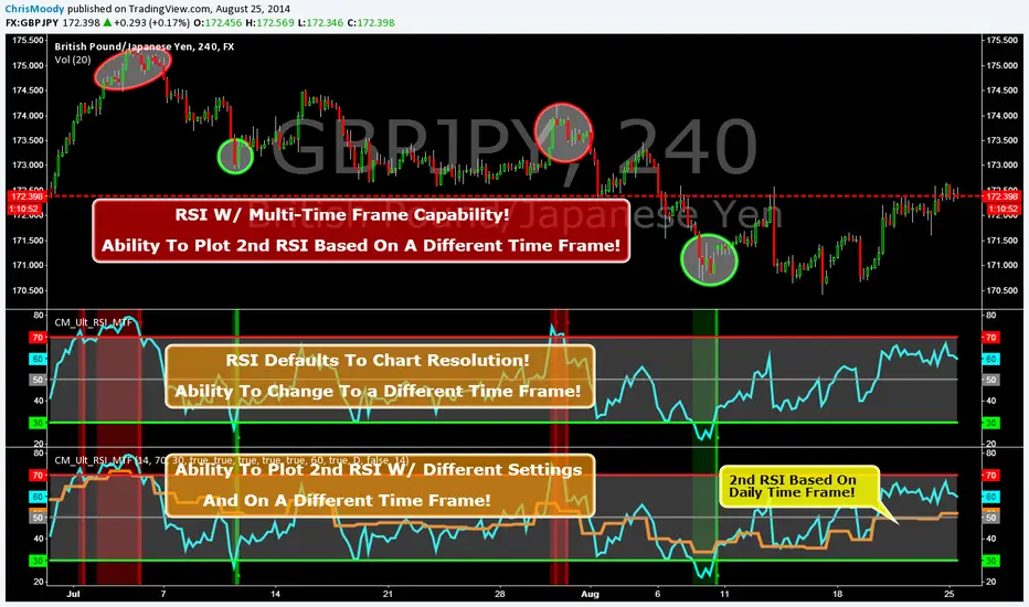 RSI with ability to change first RSI to a different Time Frame.(Defaults To Current Chart Time Frame).