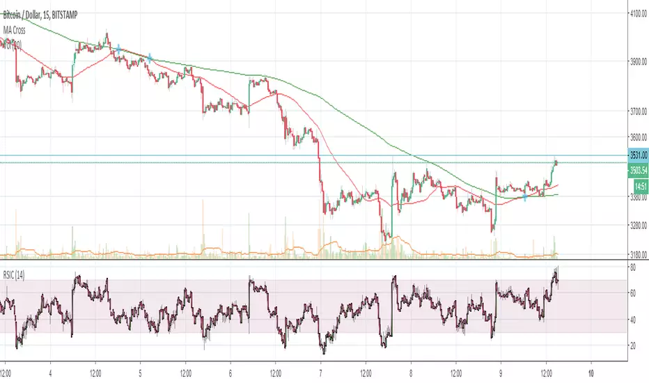 The implementation uses an RSI calculated from the highs and lows for the wicks.