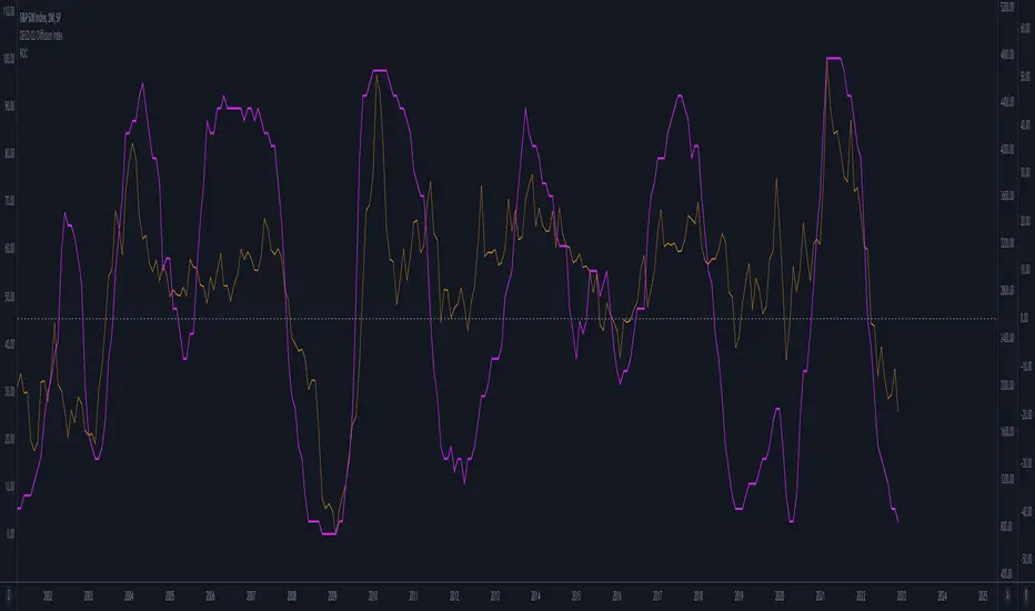 What it does it calculate YoY changes for CLI of 38 countries that are members or are associated with the OECD. Then it measures a percent of countries which CLI is rising.