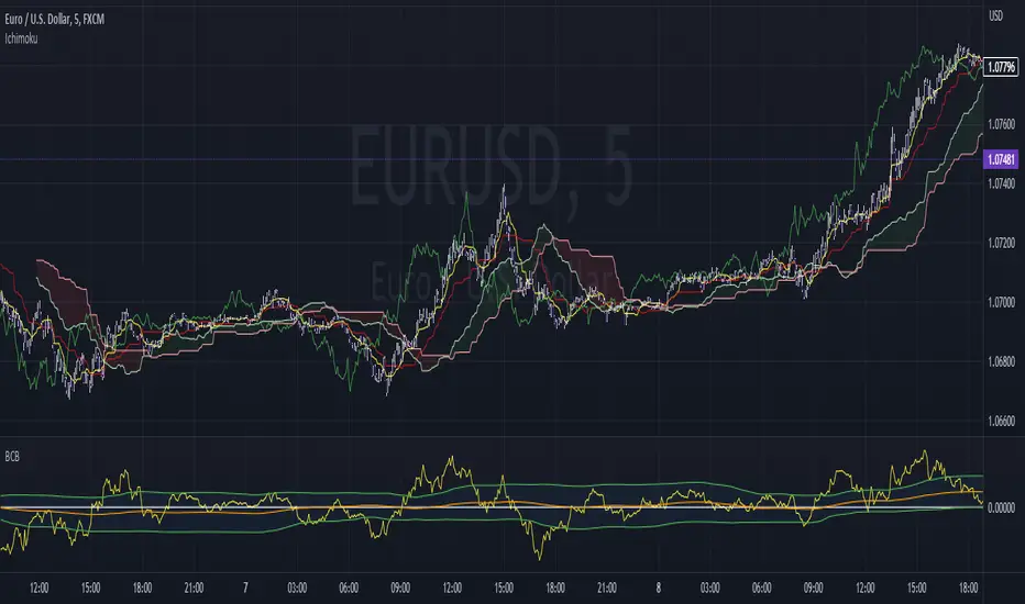 BCB combines three key elements: a Momentum Script (simulating Chikou Span), a Bollinger Band Script, and a Timeframe Switcher, all working together to provide a refined trading perspective.