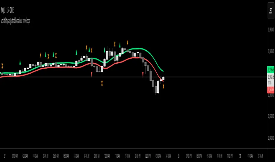 overall, this indicator provides a smoothed, dynamic volatility envelope with clear visual entry and exit cues based on first closes outside and back inside these envelopes, making it a helpful assistant for manual traders seeking to capture statistically significant breakouts while maintaining disciplined exits.