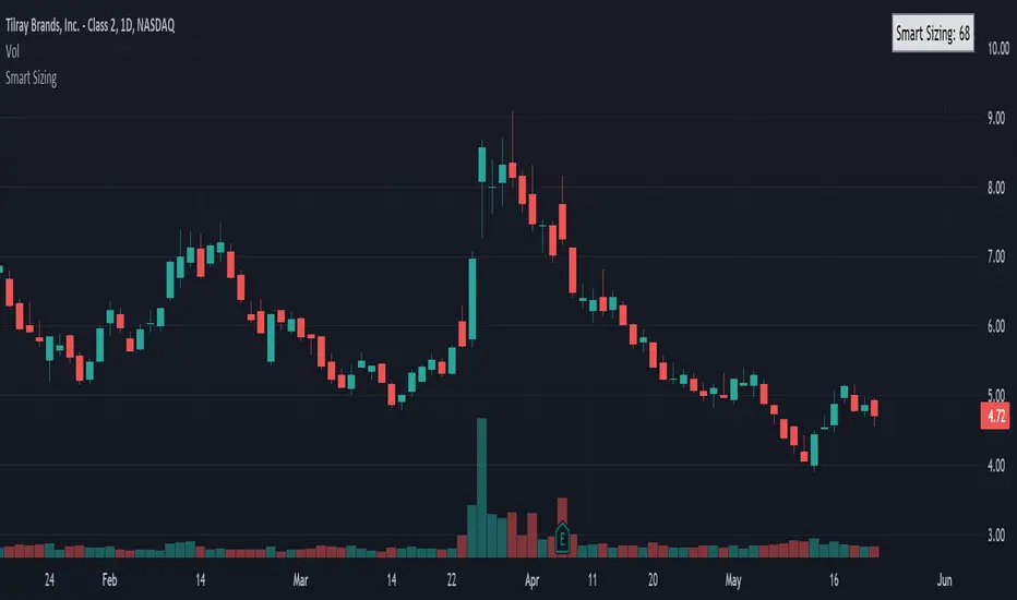 That's what the Smart Sizing indicator does, it tells you directly on the chart in a small table and right next to the indicator a value that is how many shares to trade according to your account value and risk objectives. You simply enter in your account value in the indicator settings (I update mine everyday), what % of your account you want to risk, and what ATR Length and Timeframe you wish to use. For example, if you entered your account value at $10,000 with risk percentage at 1% and if you used the daily ATR which was 0.50 then it would show as 200 shares (10,000 x 0.01) / 0.50 = 200 and by trading 200 shares that means if the stock went against you by 1 daily ATR it would equal 1% of your account. So if you used a ATR trailing stop or a fixed stop based on the ATR this indicator can help you determine what your correct position size should be so you can practice good risk management.
