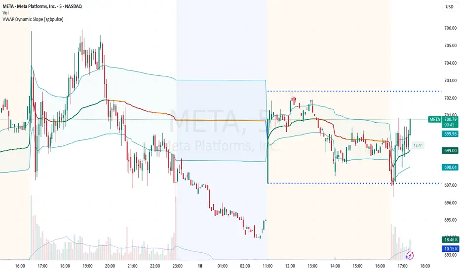 - On a 5-minute chart: The indicator will check if the VWAP changed by 1.5 ‱/min (5 times the per-minute threshold) within a single bar. If so, the slope will be considered steep. Explanation: A 5-minute bar contains 5 minutes, so the cumulative change in VWAP needs to be 5 times greater to be considered "steep" on the same scale.