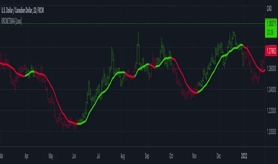 Kendall Rank Correlation NET on SMA [Loxx] is an SMA that uses Kendall Rank Correlation to form a sort of noise elimination technology to smooth out trend shifts. You'll notice that the slope of the SMA line doesn't always match the color of the SMA line. This is behavior is expected and is the NET that removes noise from the SMA.