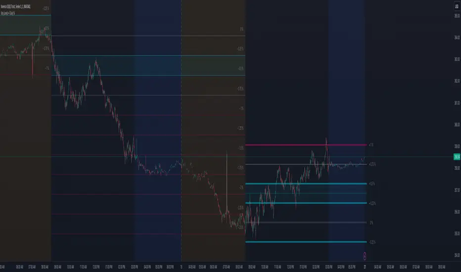 This indicator automatically identifies and progressively draws daily percentage levels, normalized to the first market bar.