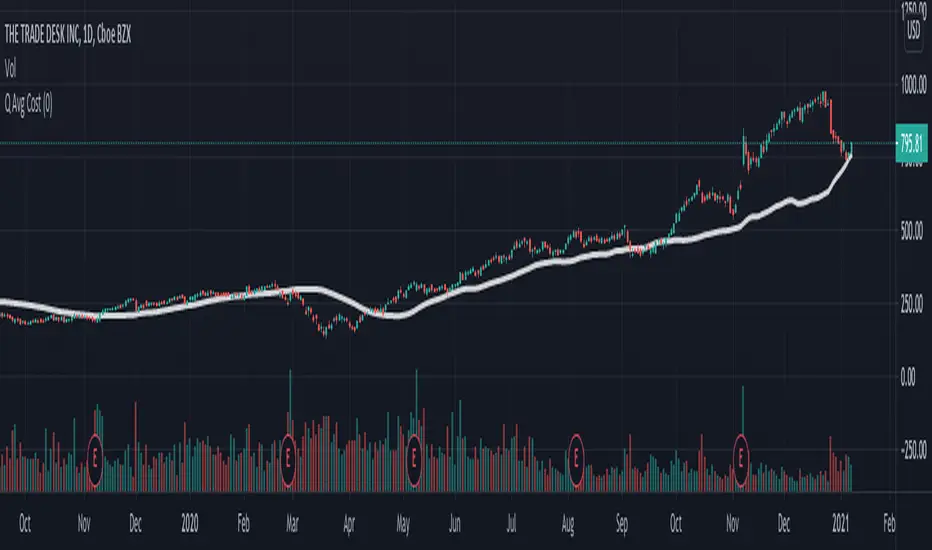 Calculated the average cost of the shares in the market. If close > indicator, means the market average share cost is below the close, this is a bullish sign. Otherwise, the market average share cost is above the close, which is a bearish sign.