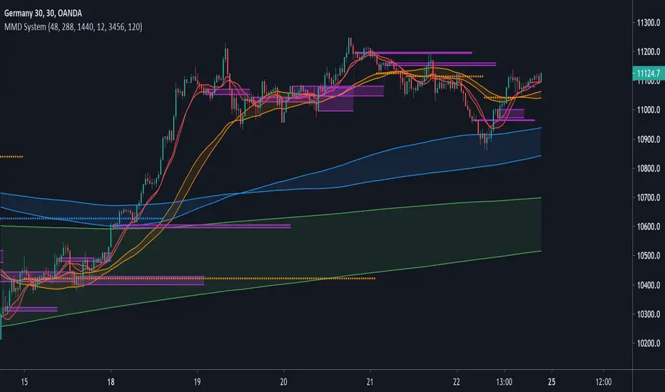 - Clouds based on pairs of EMA + SMA acting as dynamic support/resistance