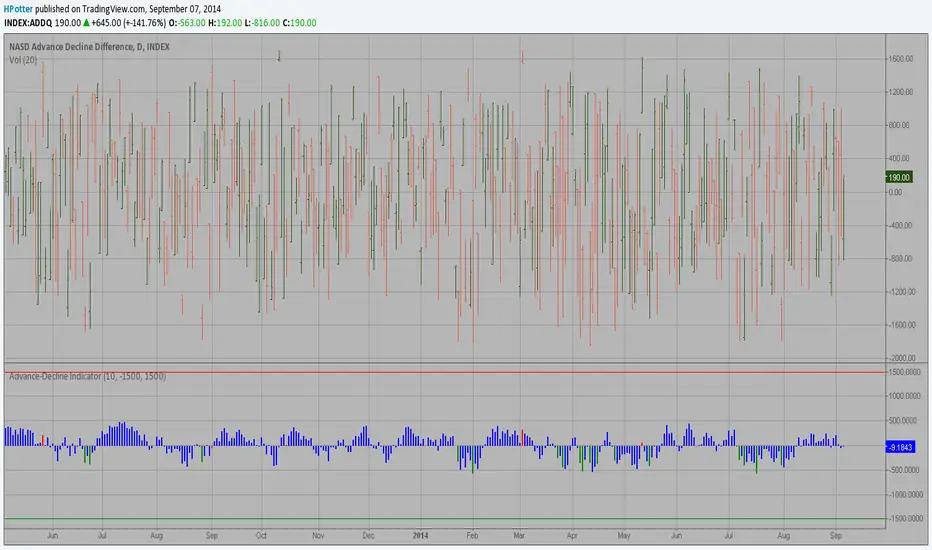 The Advance-Decline Indicator is a 10-period exponential moving average of