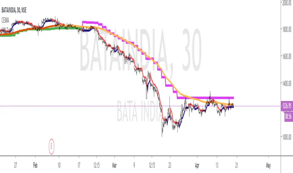 This is a indicator for trend analysis. The smaller trend (the current time frame) is indicated by color blue and red. The color blue indicate uptrend and color red indicate downtrend. But don't take trade blindly. confirm with the higher time frame trend line, indicated by the color green and pink. green means uptrend and pink means downtrend. if the higher trend is in uptrend, focus only on uptrend part of smaller trend line and ignore the downtrend part. Going with the larger trend increases your success by large extent.