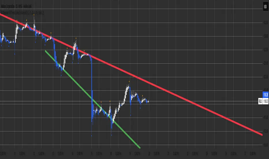 This script differs from standard pivot-based support/resistance indicators by applying **linear regression analysis** to clusters of recent pivot points instead of simply connecting the last two pivots. While many scripts plot lines between individual swing points, this approach calculates the "line of best fit" through multiple recent pivots (3-5 points), creating statistically-derived trend lines that better represent the overall price trajectory.