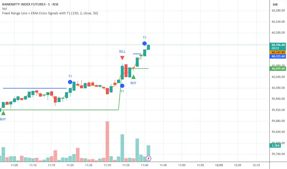 Fixed Range Line + EMA Cross Signals with Targets