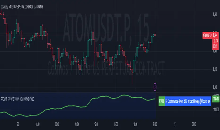 This script helps traders visualize and understand the market dynamics between Bitcoin dominance, Bitcoin price, and altcoin performance, providing insights into different market cycles and potential trading opportunities.