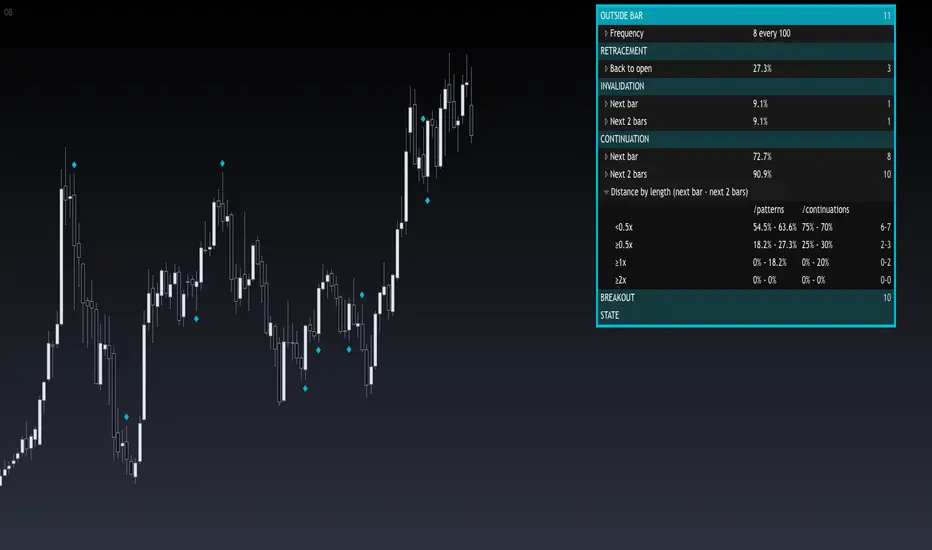 Knowing there are many definitions about the Outside Bar pattern, here we're strictly referring to one bar's extremes beyond one other.
