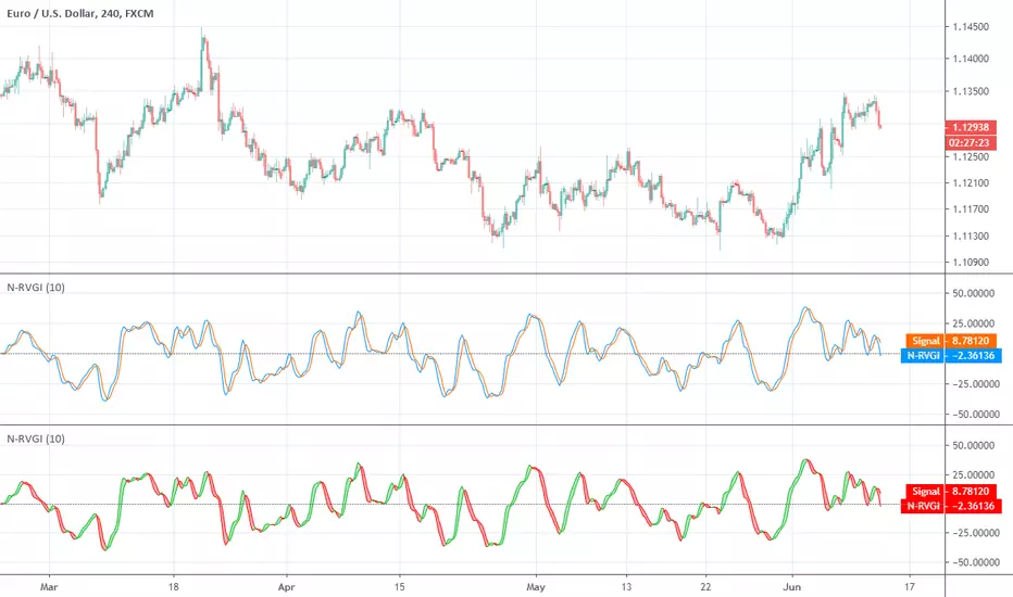 This is the Relative Vigor Index indicator just multiplied by 100 to have non-zero integer part