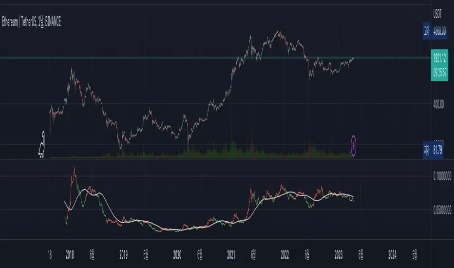 해당 지표는 기본적으로 BTC 와 현재 보고 있는 차트의 가격 비율을 표시하도록 되어있습니다.