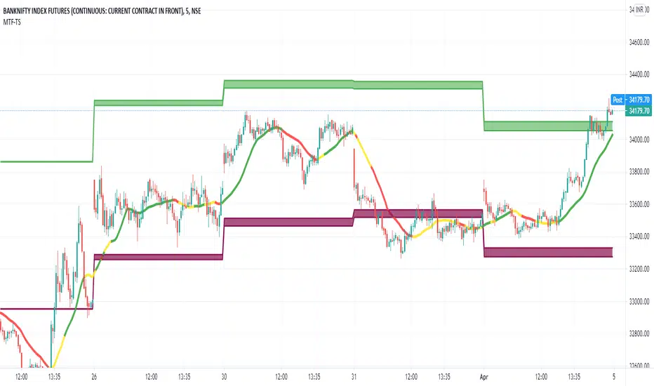To Indicate the strength of the trend line , RSI is computed over multiple timeframes and then used to colour the trend line to show its strength