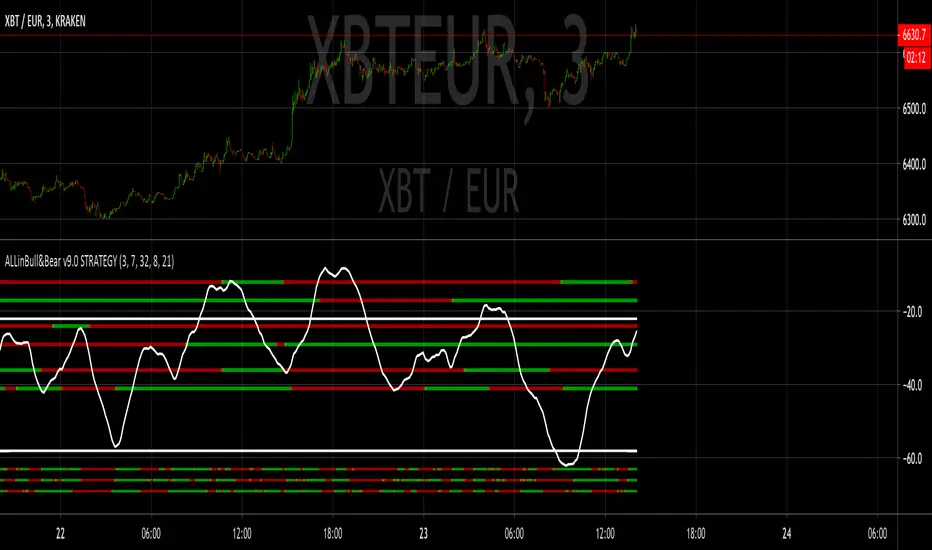 First you need to find the right Indicator Settings and the best preforming TimeFrame for chosen crypto or fiat pair. You will do that with a "STRATEGY" Indicator. I chose either 3min TF for highly liquid assets or 15min TF for assets of low liquidity but you can choose whatever you want to up to 30min TF.