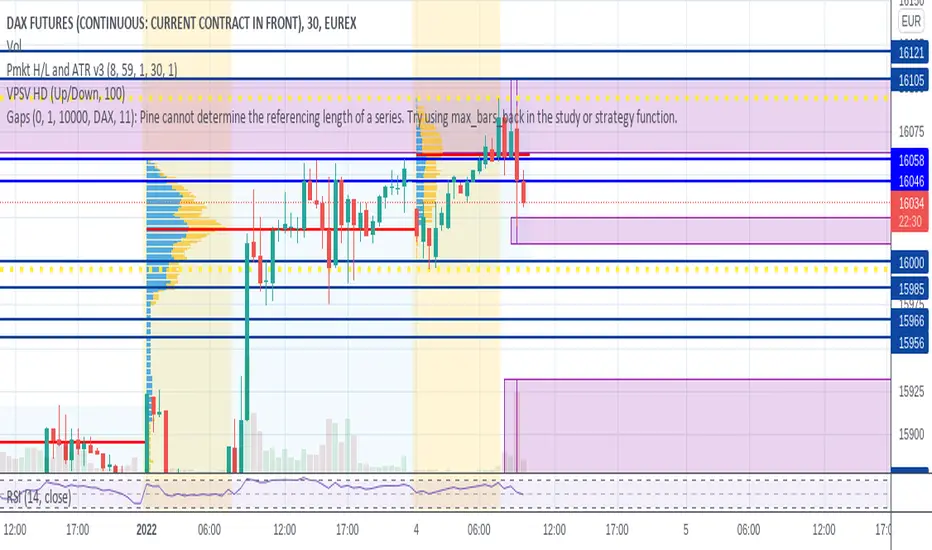 The purpose of this script is to show the gaps to futures or cfd of the underlying cash chart, because very often gap closing provides an opportunity to fade the move.