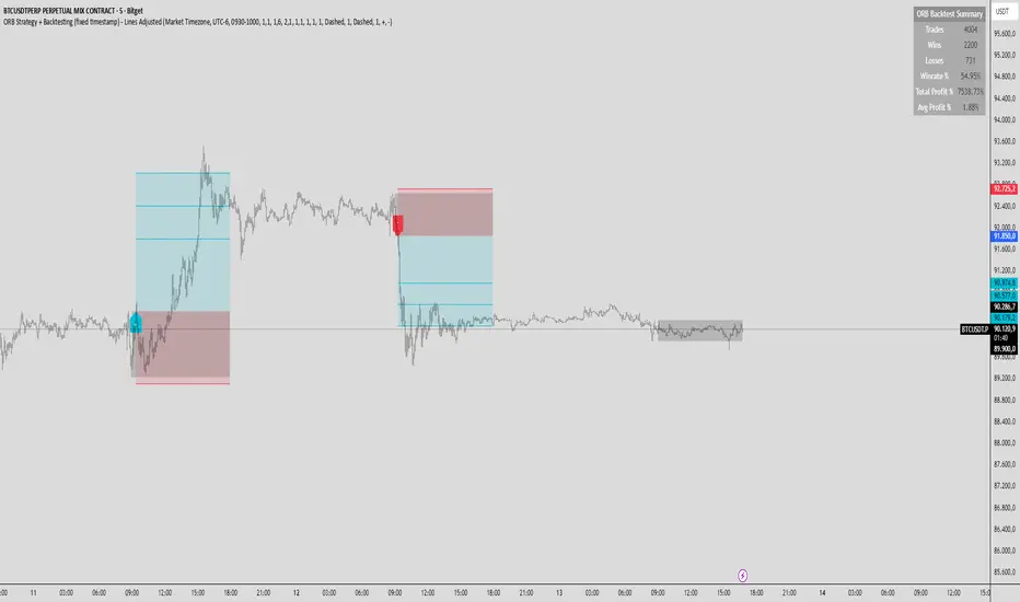 This script implements a complete Opening Range Breakout (ORB) strategy, featuring built-in backtesting, advanced TP/SL visualization, full style customization, and a performance dashboard. It is designed for traders who want to clearly evaluate breakout performance directly on the chart.