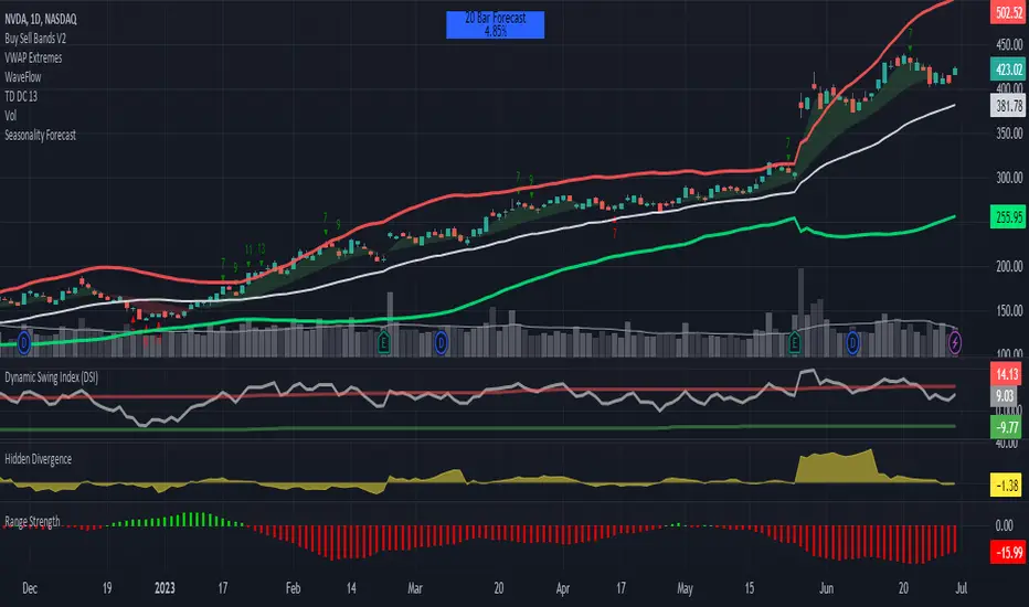 This indicator can be applied to all markets and should be used on the daily timeframe with 10 - 100 day forecasts, it is designed to be used as part of an overall trading process in order to add strength to entry signals. If you don't see a reading it's because the instrument you're looking at doesn't have enough historical data to calculate an average expected return, ideally you always want to use at least 5 years of historical data to calculate a seasonality forecast and the more history used the more robust the forecast is.
