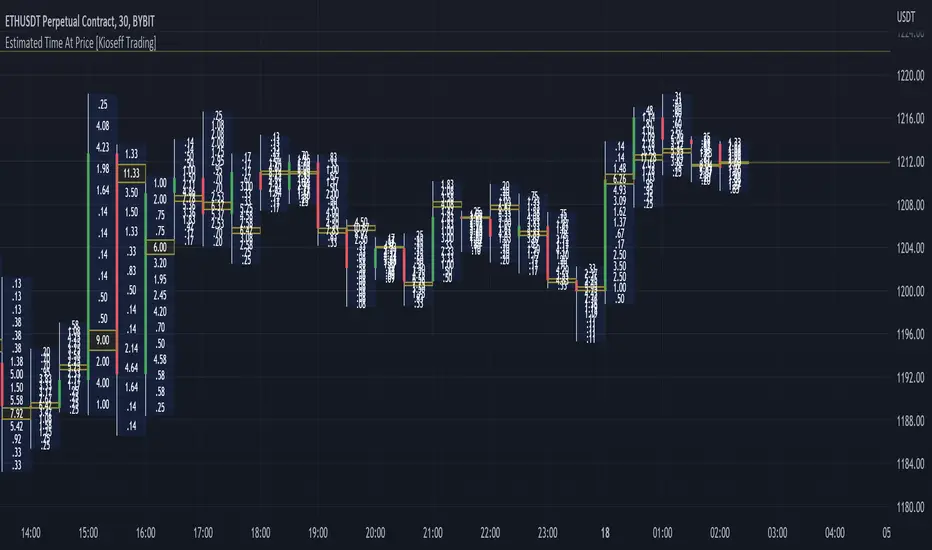 Instead, this script looks to estimate the approximate time spent at price blocks; all time estimates are in minute.second format.