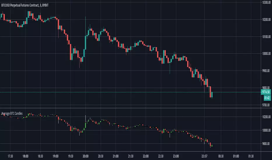 Takes an average from 6 different exchanges for BTC and plots them as candles.