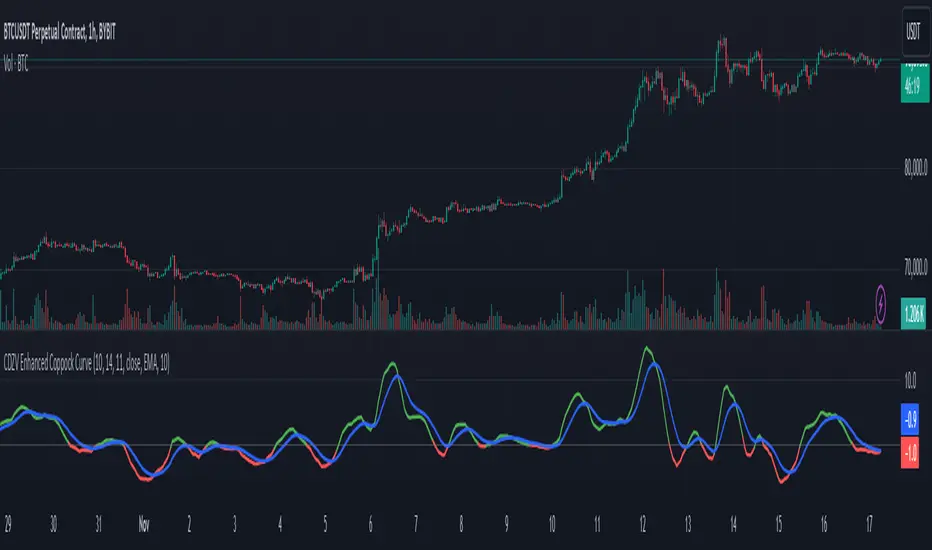 The Enhanced Coppock Curve is an upgraded version of the classic Coppock Curve indicator. It incorporates several additional features for greater flexibility and analysis capabilities. This indicator is used to analyze market trends by plotting a weighted moving average (WMA) of the sum of two Rate of Change (ROC) values.
