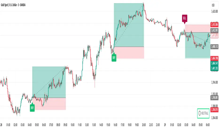The Trade Ali indicator is built for traders who want to capture trend continuation opportunities after corrections or pullbacks. By combining multiple confirmation layers and filtering out market noise, it focuses on providing cleaner, more meaningful signals that highlight stronger market conditions.