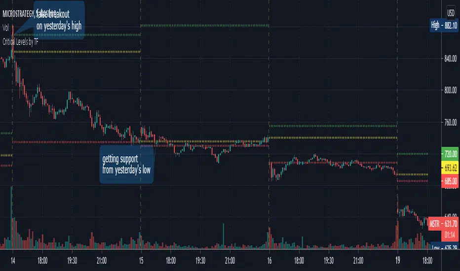 Many day traders are using the previous day high, close and low, as critical levels in their trading. in order to easily present those levels on your chart, I created this indicator in which you can define which of those you would like to present on your chart.