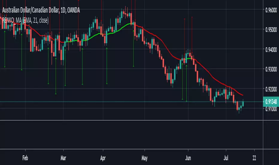 This script was written by JustUnclL as "Renko+Moving Average+RMI Alert R3 by JustUncleL" and then it was modified at around May 8, 2019 by Vitelot as a favor to show arrows at crossover of average line. Thank you to JustUnclL for script that gives so many average line choices. Thanks to Vitelot for helping change this so I can see arrows when price crosses over and closes on the other side of the moving average. I've tried to give the proper credit but I don't know much about coding. I just wanted to share this with anyone in the NNFX arena that uses Tradingview and might want to better visualize their baseline and how many trades it is giving. Thanks all. If anyone has issue with how credit was given please let me know and I am happy to modify or remove at request of original author.