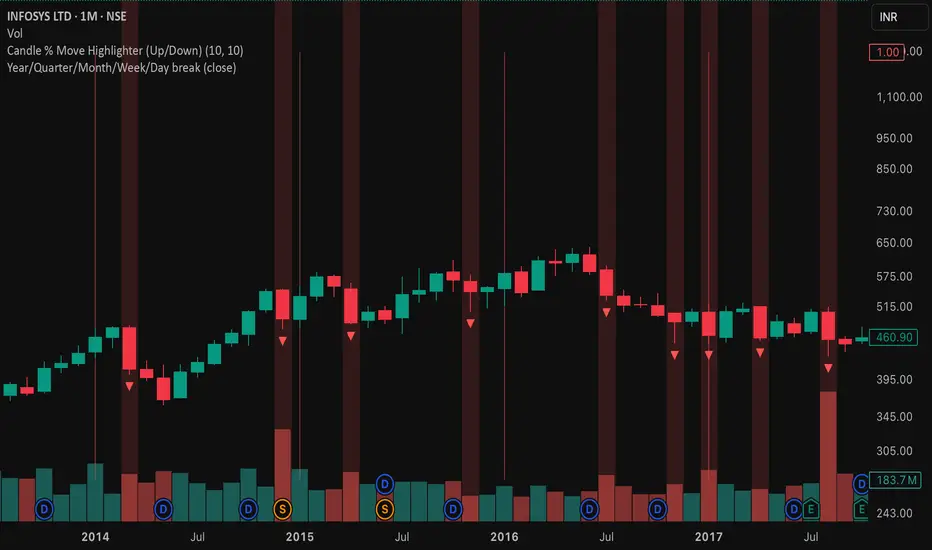 This indicator highlights candles that move up or down by a specific percentage from their open price.