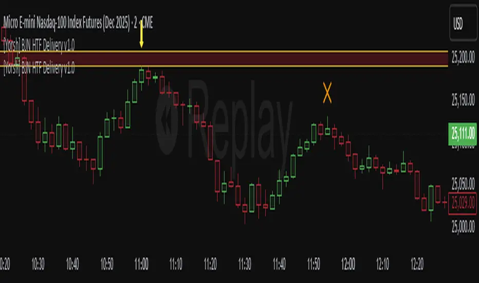 The [Yorsh] BJN HTF Delivery v1.0 is a precision-engineered utility for TradingView designed to solve one of the biggest challenges for low-timeframe (LTF) traders: understanding and tracking the real-time interaction of price with Higher Timeframe (HTF) imbalances.