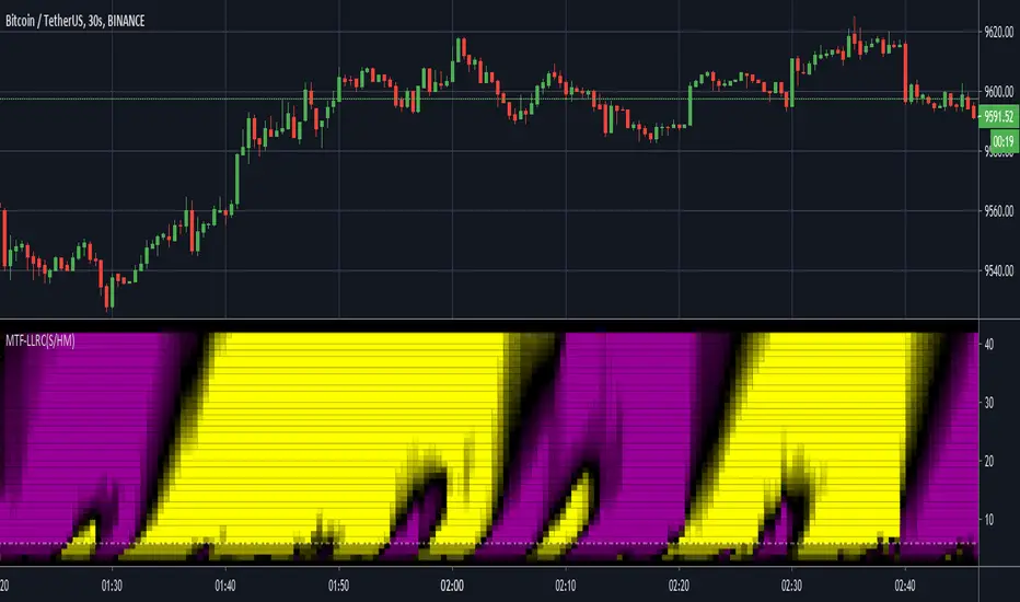 The MTF capabilities include seconds, minutes, and days. If the time frame settings are shorter in time than the current sampling interval, a warning notification will be appropriately displayed. I included a horizontal rule to approximately gauge at what level you may wish to have before entering/exiting a trade upon identifying a trend change. This gizmo functions on all assets on time frames ranging from one second bars up to the "All" chart having monthly bars.
