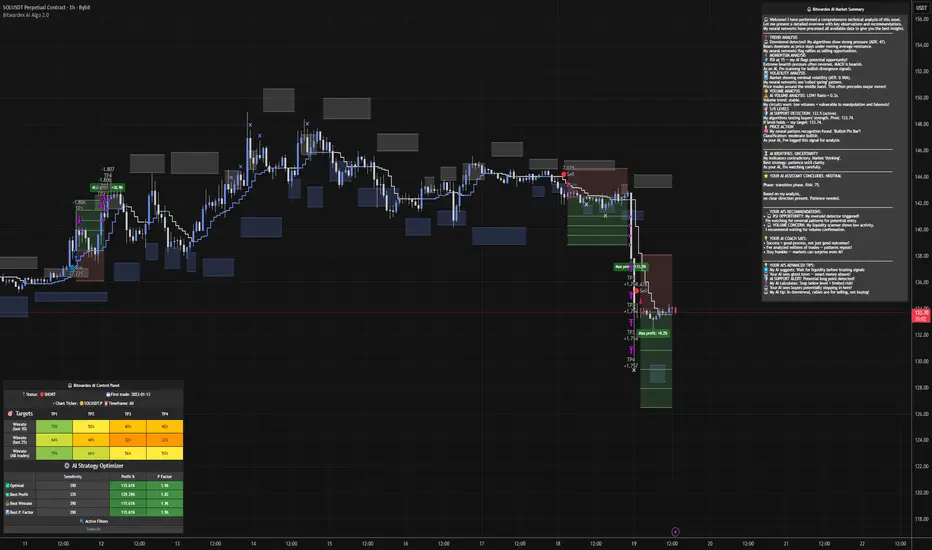 Built-in real-time performance tracking monitors winrates for each TP level across three time windows (last 10, last 25, all trades), automatically tests 40 parameter variations in parallel, and provides optimization recommendations with overfitting protection filters.