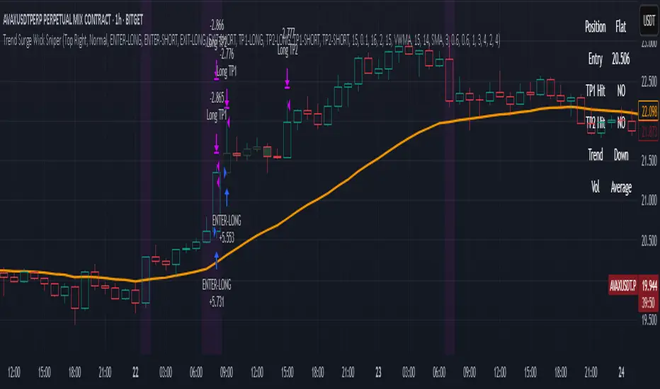 Trend Surge Wick Sniper | Non-Repainting Trend + Momentum Strategy with TP1/TP2 & Dashboard