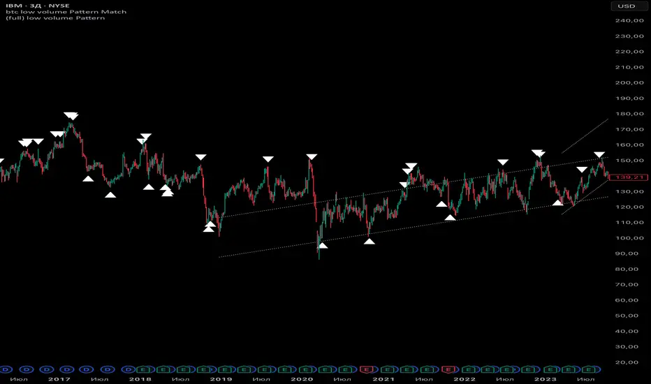 This Pine Script indicator detects potential local tops/bottoms when price makes a strong move on relatively low aggregated volume + long rejection wick.